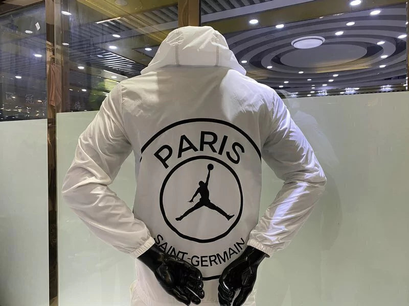 Jaqueta Nike Corta Vento Jordan x PSG Branca e Preta