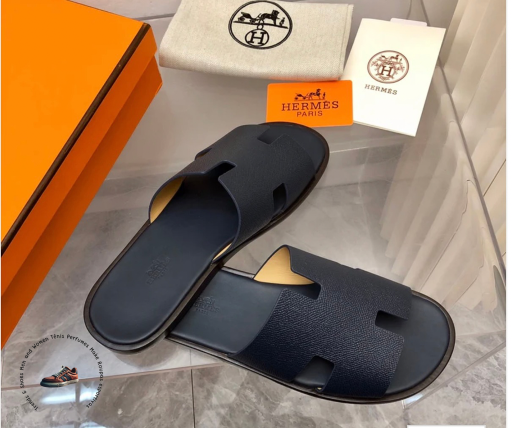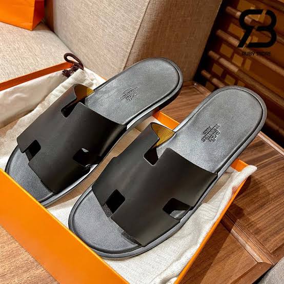 Sandália Hermes Izmir Sandal Noir Smooth Calfskin Leather
